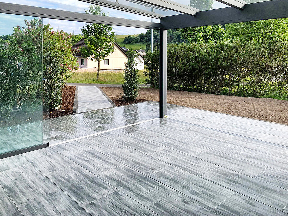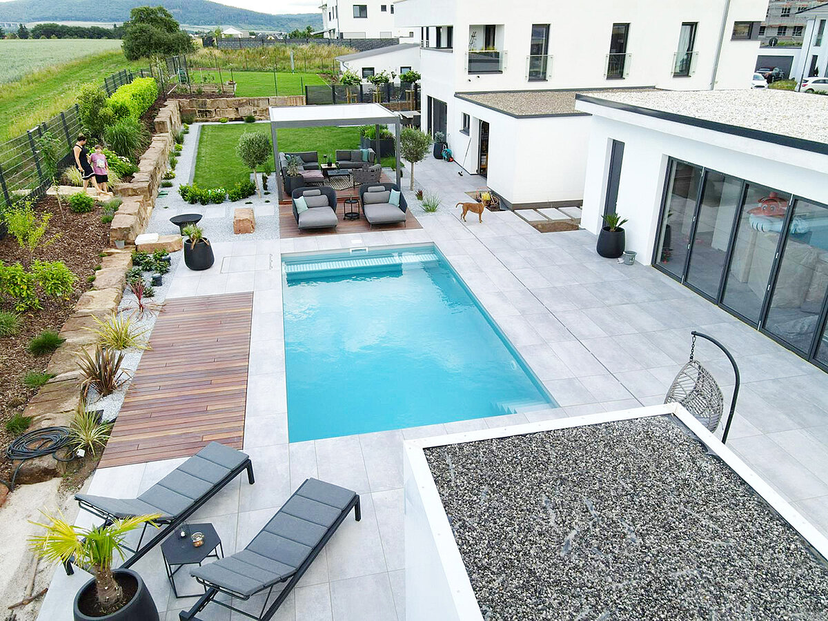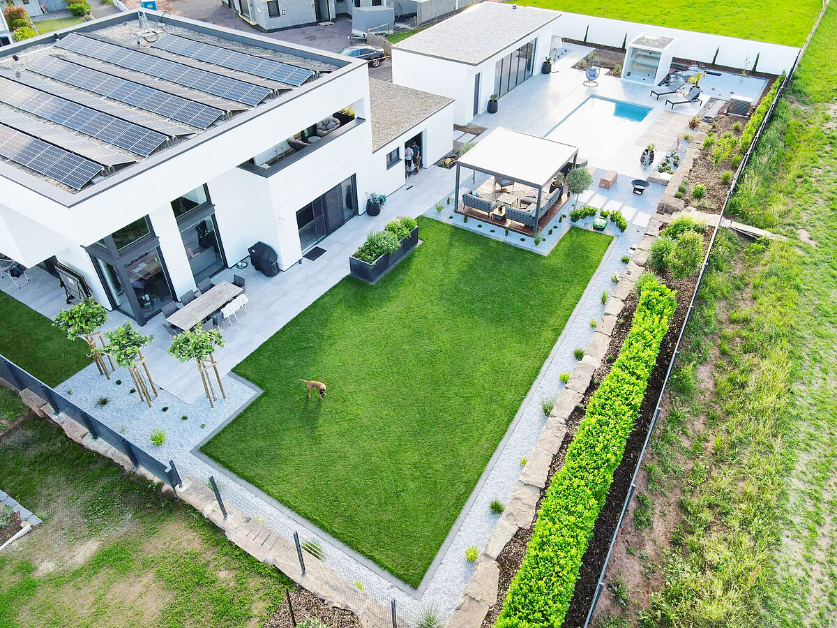 Eine Terrasse schafft Platz zum Sitzen, Entspannen und Zusammensein im Freien und verbindet Haus und Garten auf natürliche Weise.